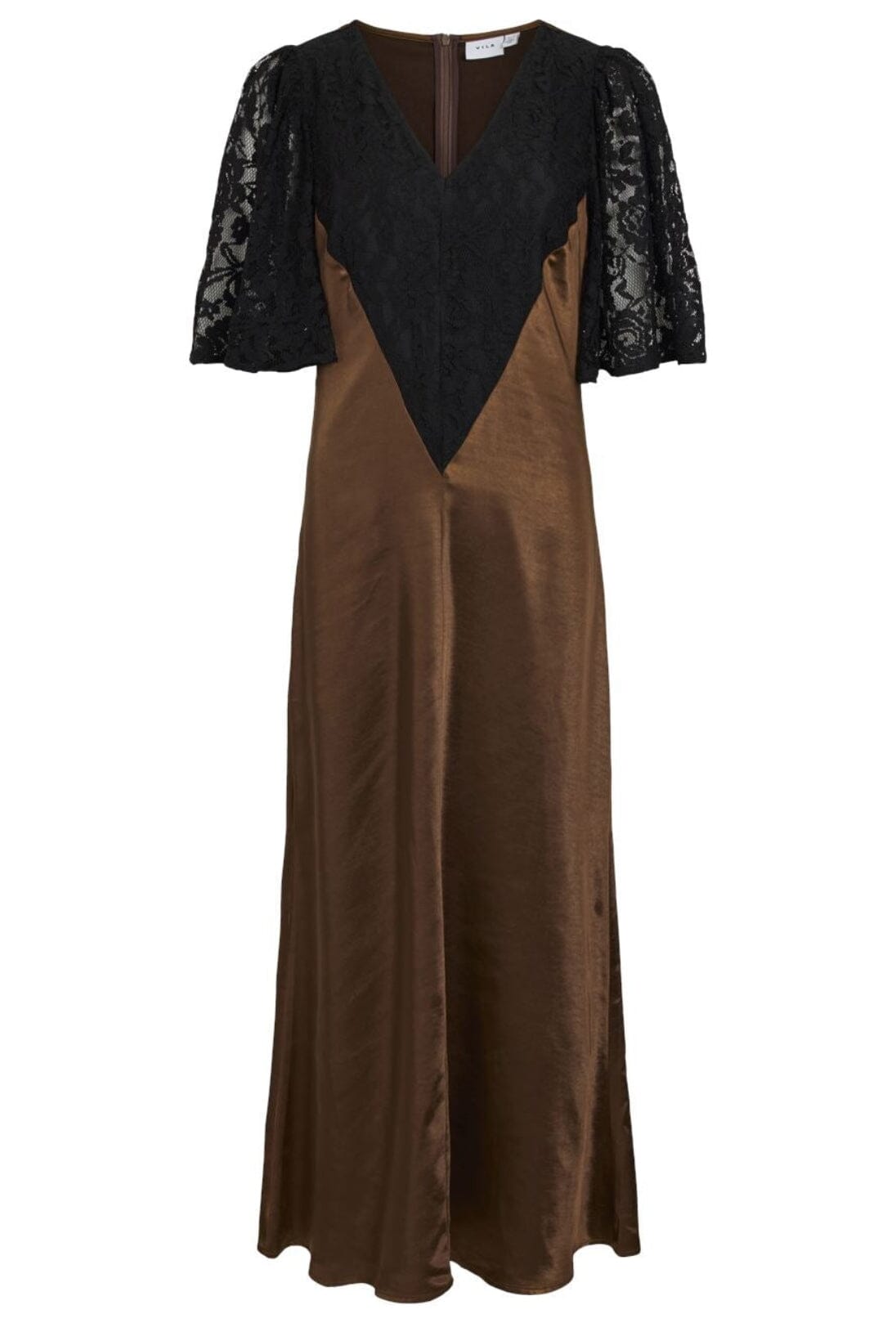Vila Vikabiha 2/4 Lace Detail Midi Dress Farbe: 4720263 Coffee Bean Black Lace