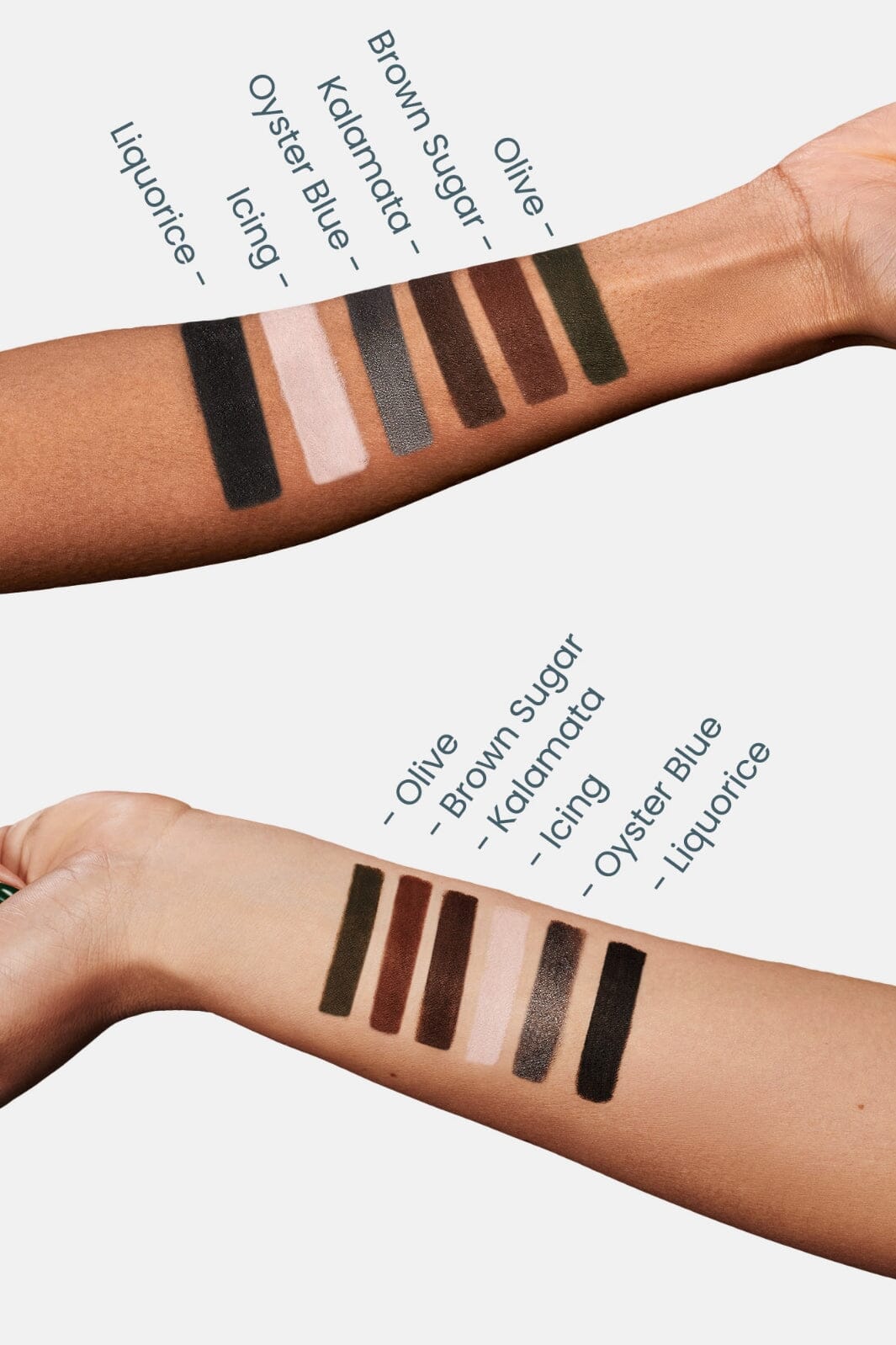 Beginnen Sie, indem Sie den Eyeliner auf die gewünschte Länge herausdrehen. Ziehen Sie eine Linie entlang des Wimpernkranzes von der inneren zur äußeren Augenwinkel. Die cremige Konsistenz macht es einfach, sowohl dünne als auch dicke Linien zu ziehen. Verwenden Sie die spitze Seite für präzise Linien und die flache Seite für breitere Striche. Lassen Sie den Eyeliner ein paar Sekunden trocknen.