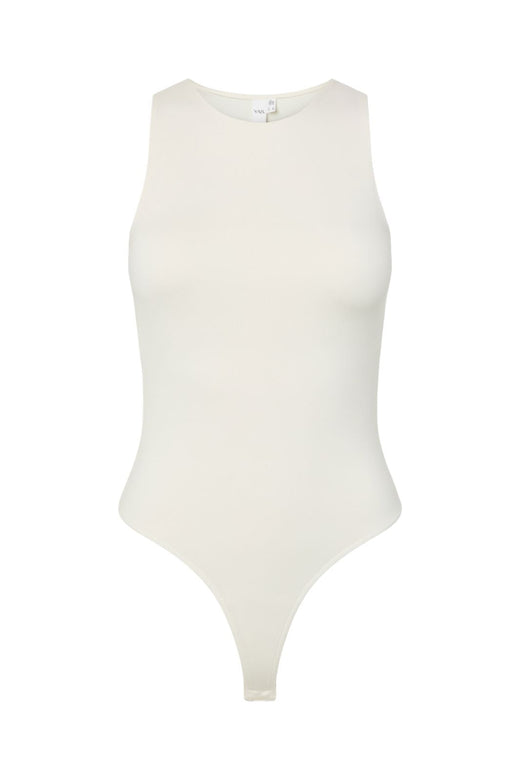 Weiße Body von Y.A.S aus Jersey-Material mit Stretch. Die Body hat einen runden Halsausschnitt und ein ärmelloses Design mit einer figurbetonten Passform.