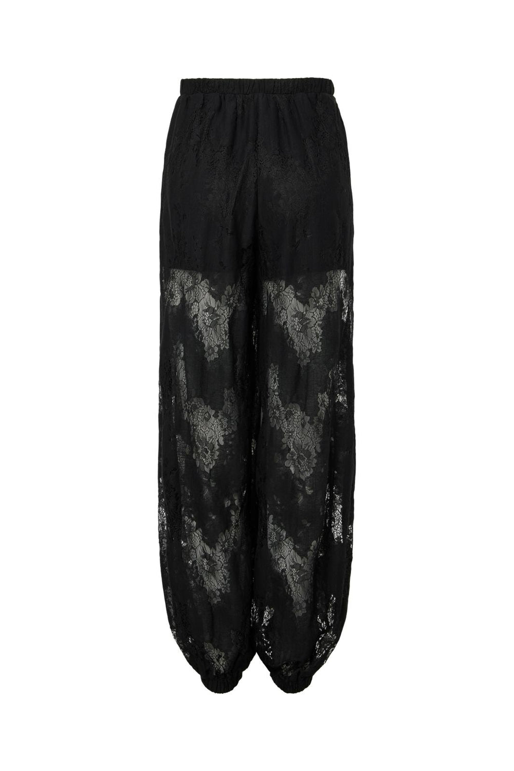Schwarze Ballonhosen von YAS mit Blumen-Spitzenmuster über die gesamte Hose. Die Hosen sind für festliche Anlässe geeignet, dank ihrer lockeren Passform und der Knöchellänge.